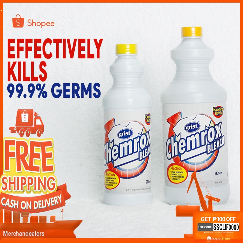 Chemrox Bleach 1 Liter Sodium Hypochlorite Whitens Clothes Disinfect Shopee Philippines